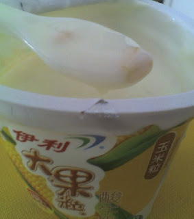 相對於牛奶,這裡的酸牛奶更多(酸牛奶就是優酪乳)。口味還很多種,除了一些我們可以想像到的口味,例如香蕉、奇異果之外,還有看起來有點怪的玉米粒(但我買了,如圖。還好啦!有點玉米濃湯的味道:))、穀物加杏仁,還有看起來就很好吃的桑甚加藍莓。有機會嚐嚐好了!